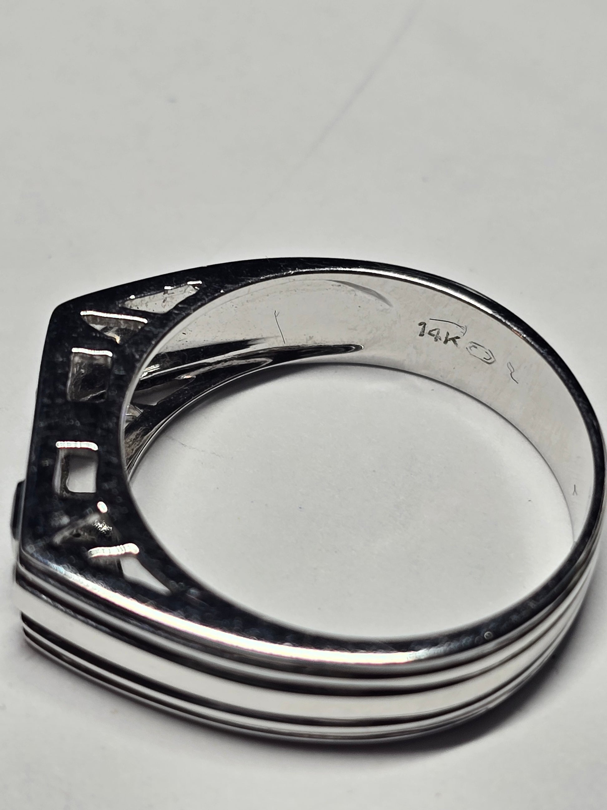 "NEW MAN RING" 14k white gold with diamonds and sapphire in new condition never worn.