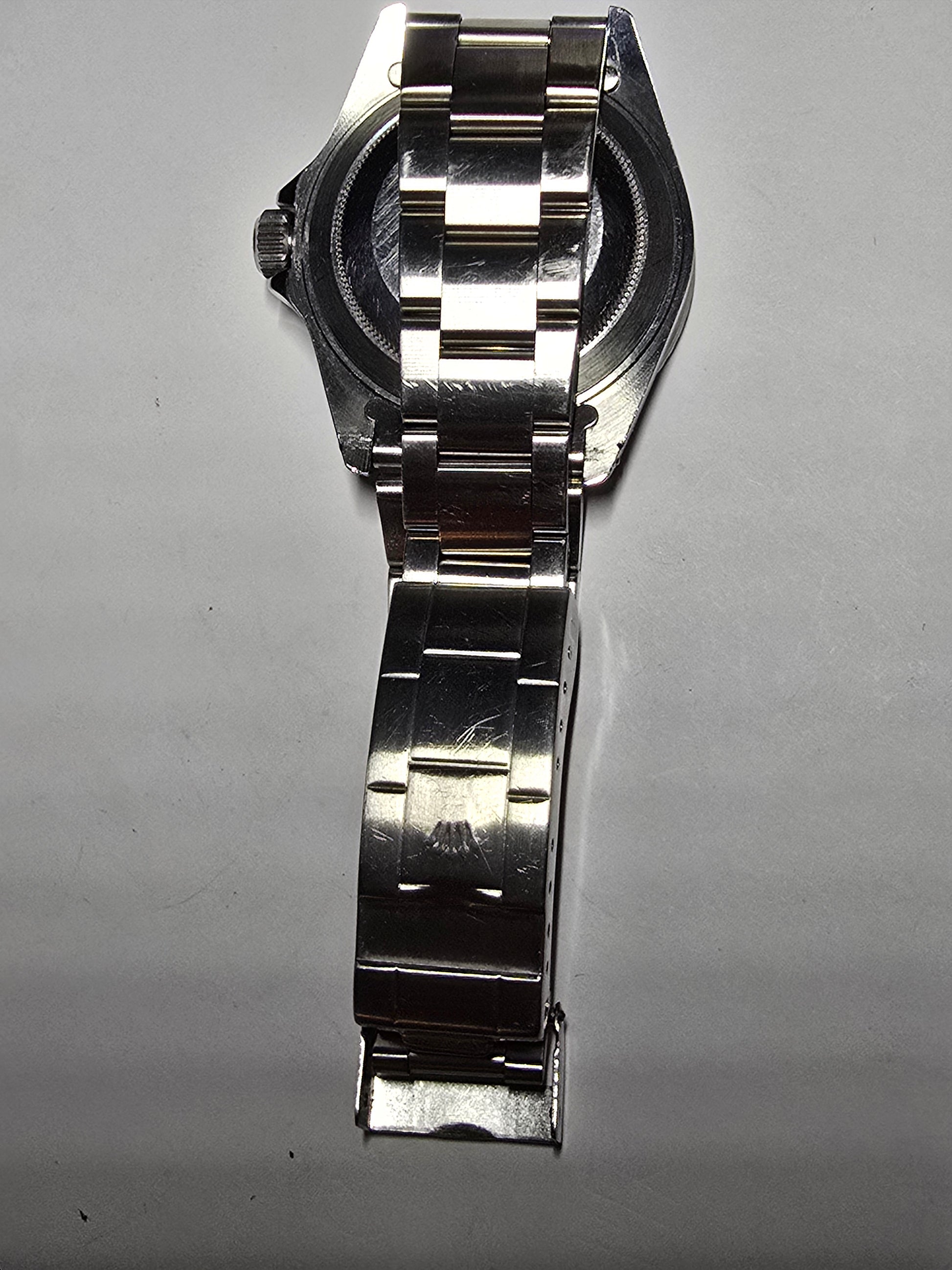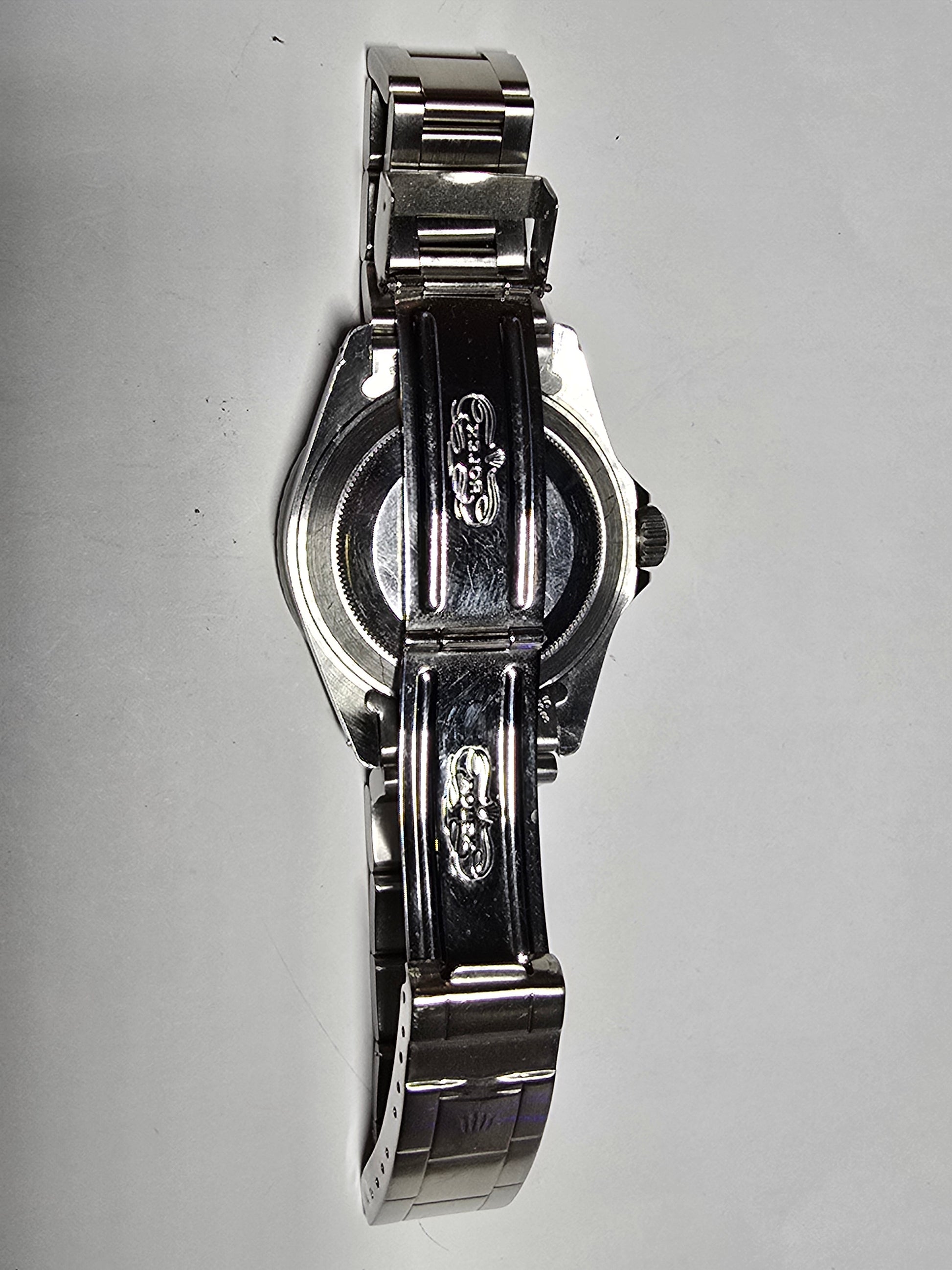 The Rolex Submariner Date (16800) stands as a timeless watch celebrated for its lasting charm, blending various elements that serve as a tribute to Rolex's legacy. Its 40mm Oystersteel case, renowned for its robustness, gracefully matches the sleek blue steel bezel, with a 60 minute engraving evoking an aura of sophistication while enhancing its functionality.