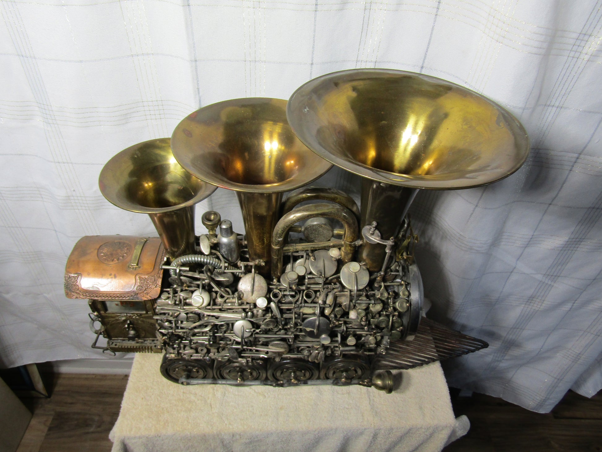 Sonny created his art from a variety of musical instrument and automotives scrap objects