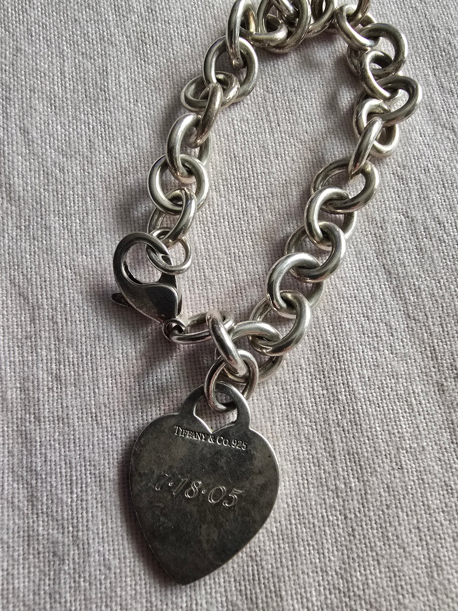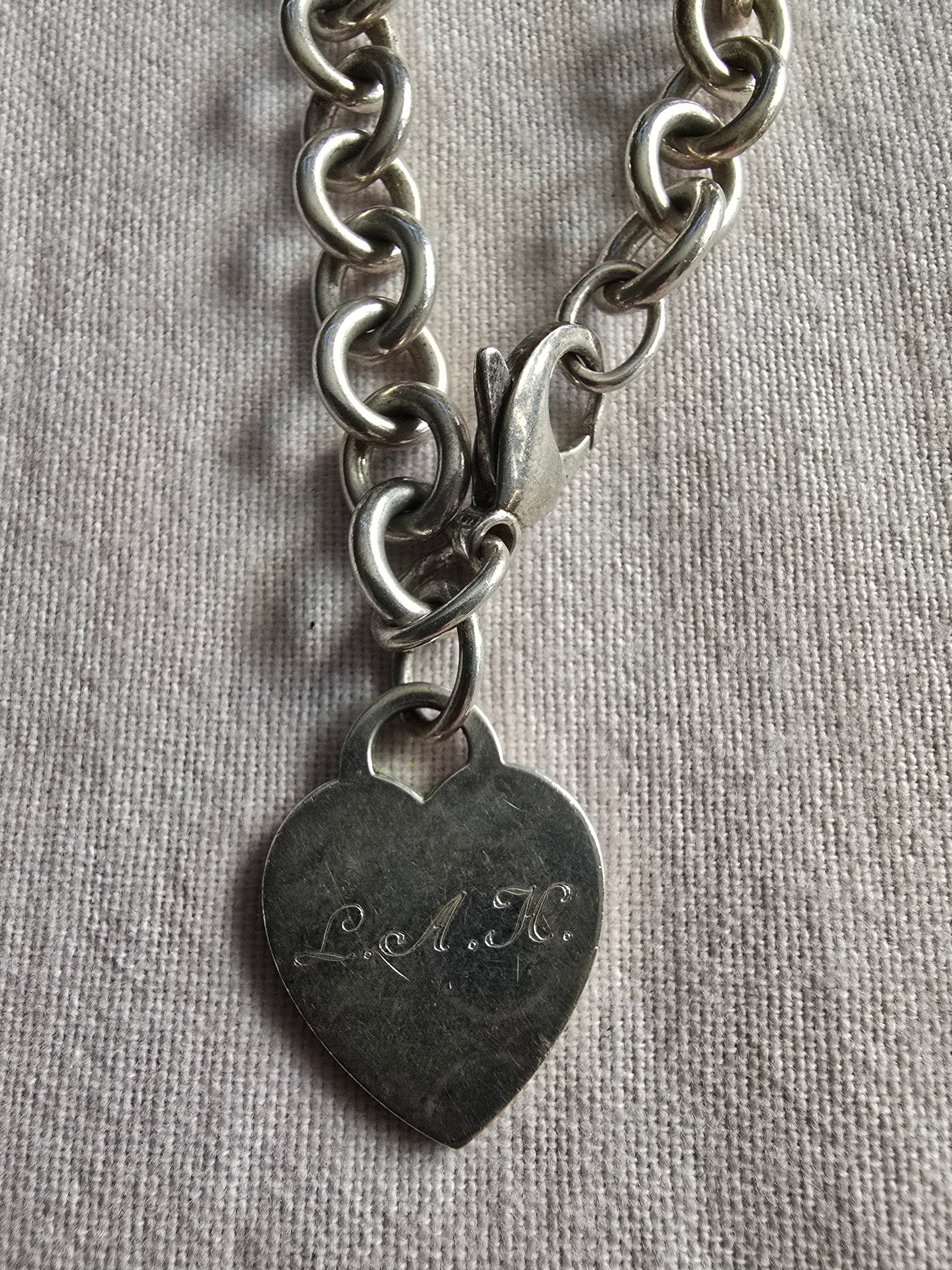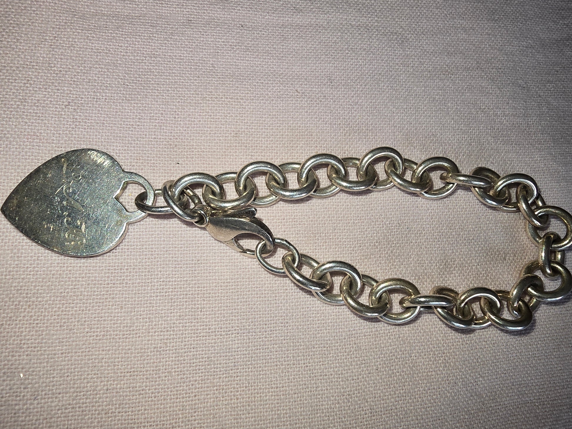 Sterling Silver Tiffany & Co Heart charm link bracelet