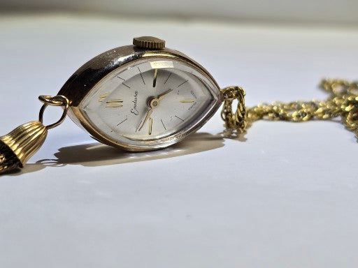 Vintage Endura Ladies see through back pendant with necklace chain and original box.