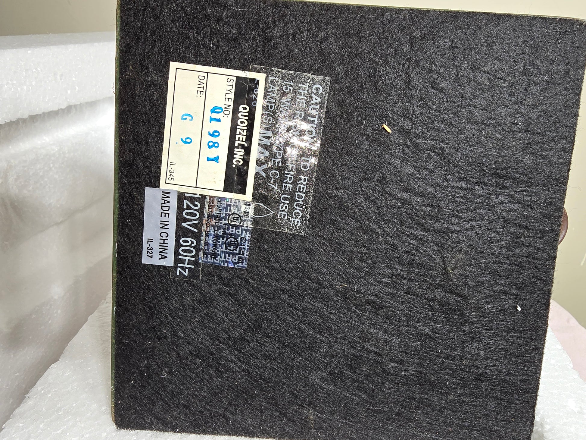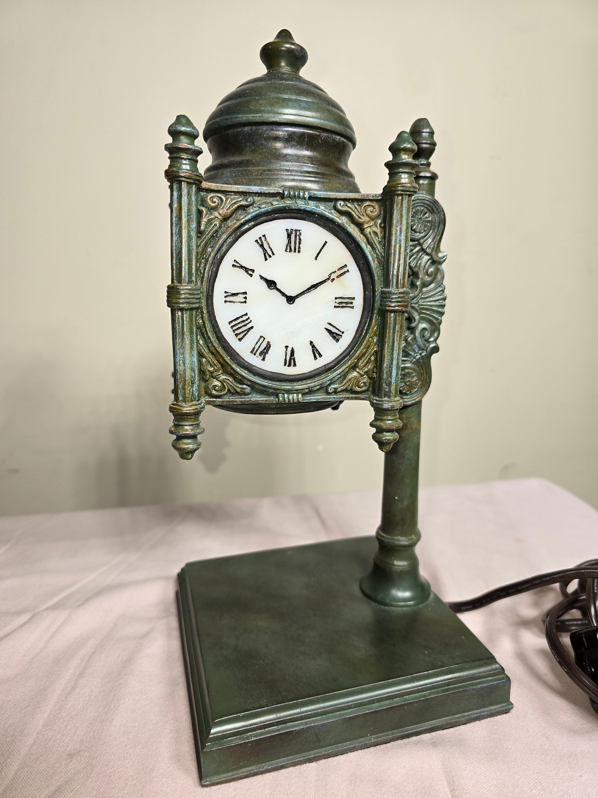 Vintage Marshall Field's - Quoizel - State Street Tiffany Clock - Accent Lamp. the piece is in excellent used condition. This comes with its original box. The box states that it measures approximately 12 inches in height, 6 inches in length and 6 inches in width. Please refer to pictures for better understanding of condition. we will consider all offers