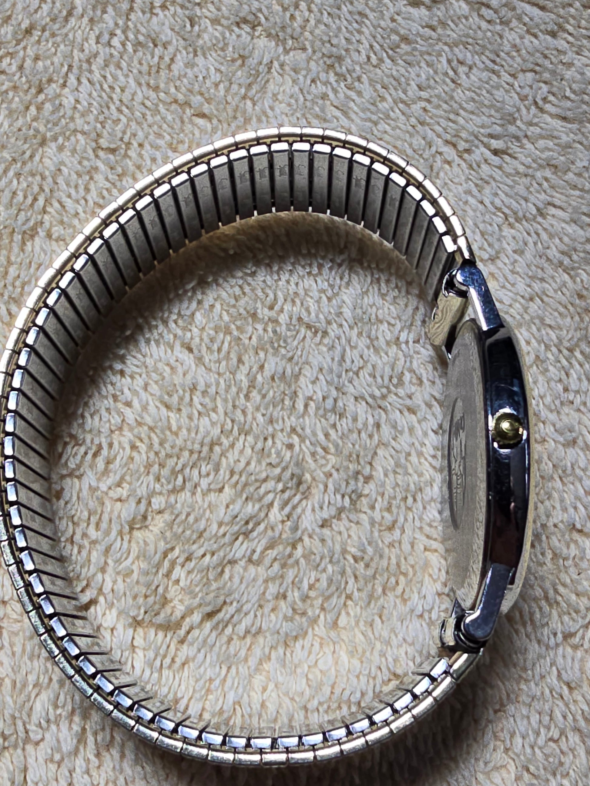 Quartz, gold toned quart wristwatch in excellent working and cosmetic condition. The watch has new battery installed. gold dial and silver and gold case, few scuffs from normal use please refer to pictures for understanding of condition.