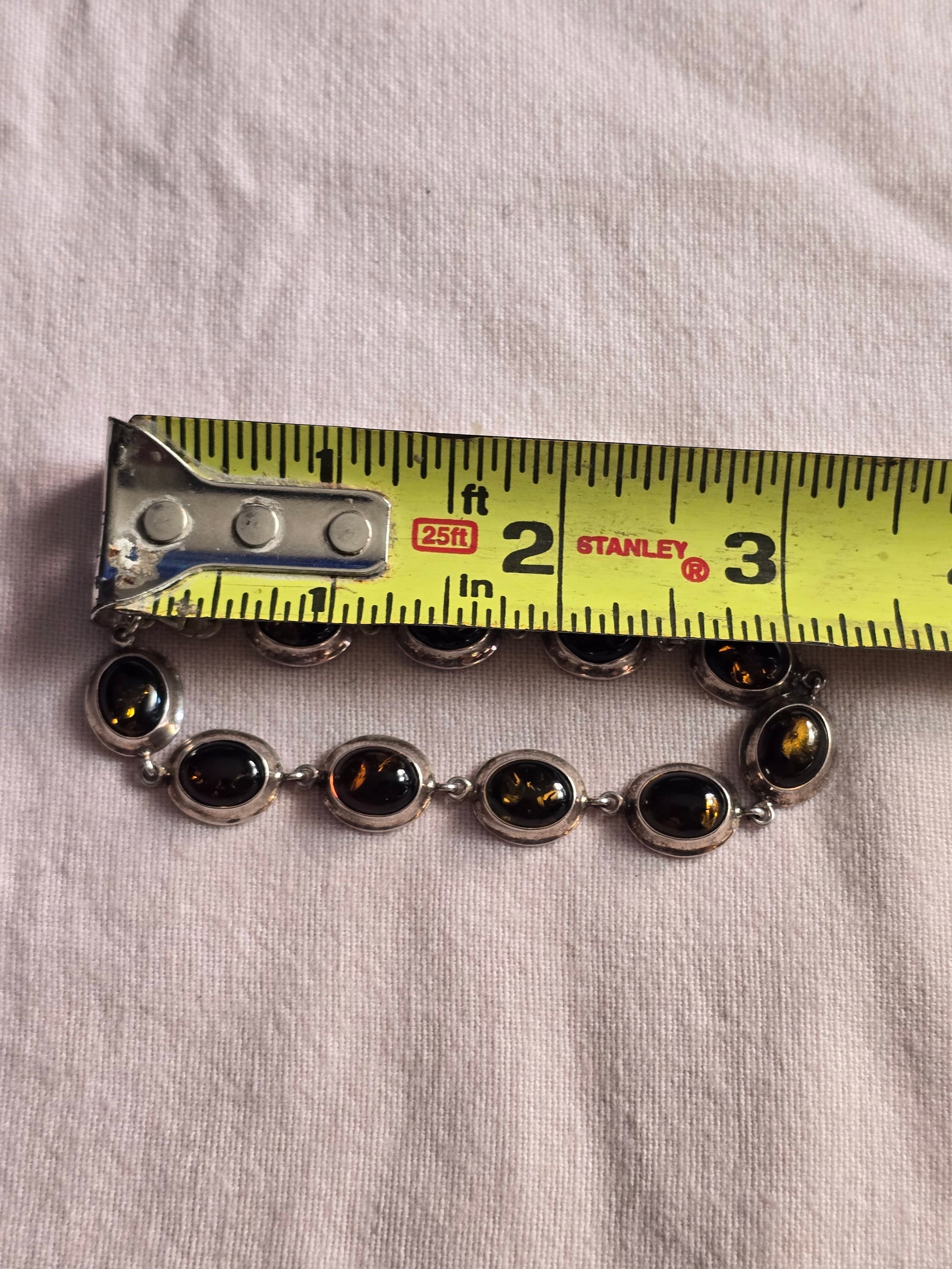 Vintage sterling silver with natural Baltic Amber Link Bracelet